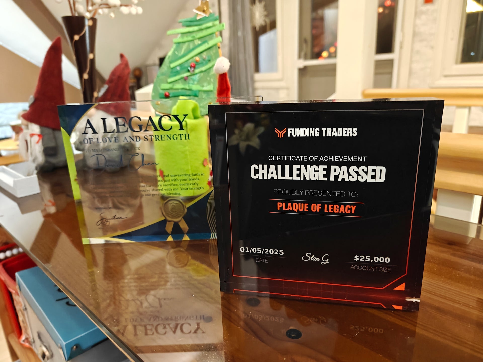 A Funded certificate plaque award offers a distinguished way to recognize traders who have successfully completed their prop firm funding challenges. Crafted for professional display, the Funded certificate plaque award highlights achievement, credibility, and commitment, making it an ideal addition to any trading workspace or office environment.
